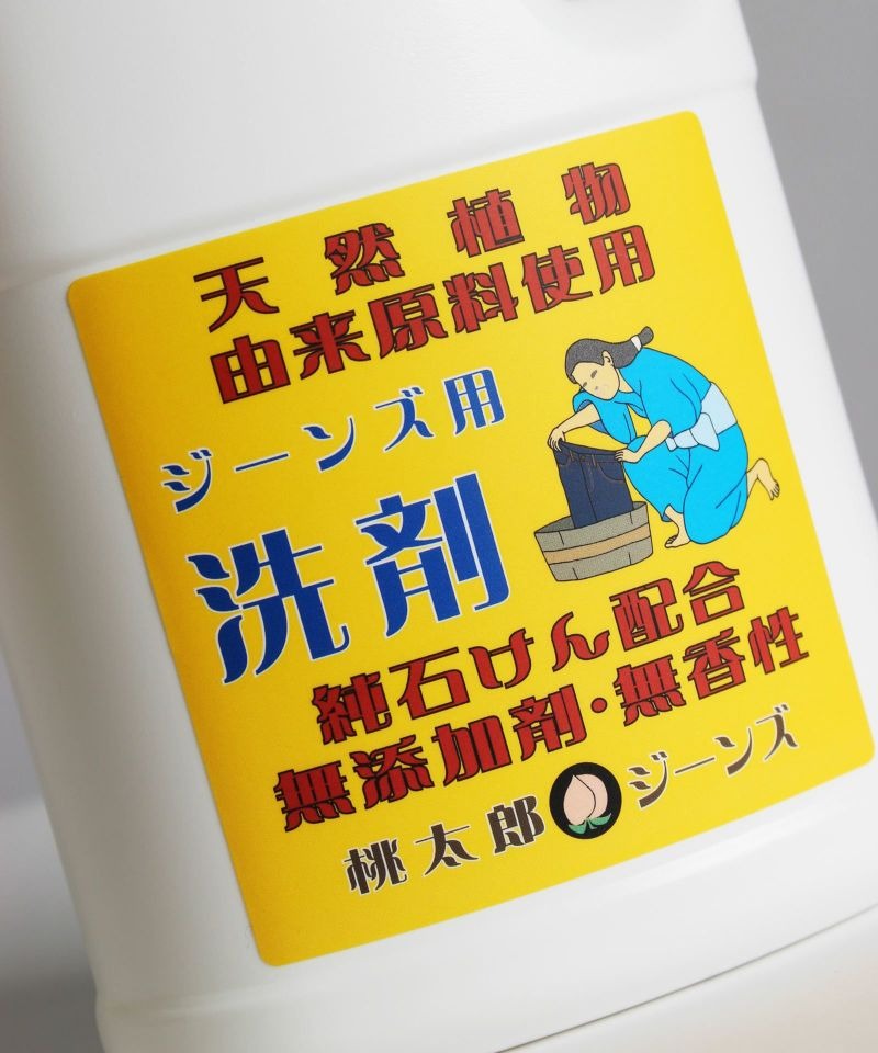 おすすめなのが、桃太郎ジーンズ専用洗剤。この洗剤は、デニムの色合いをキープしながら、匂いや汚れをやさしく落としてくれる設計になっています。