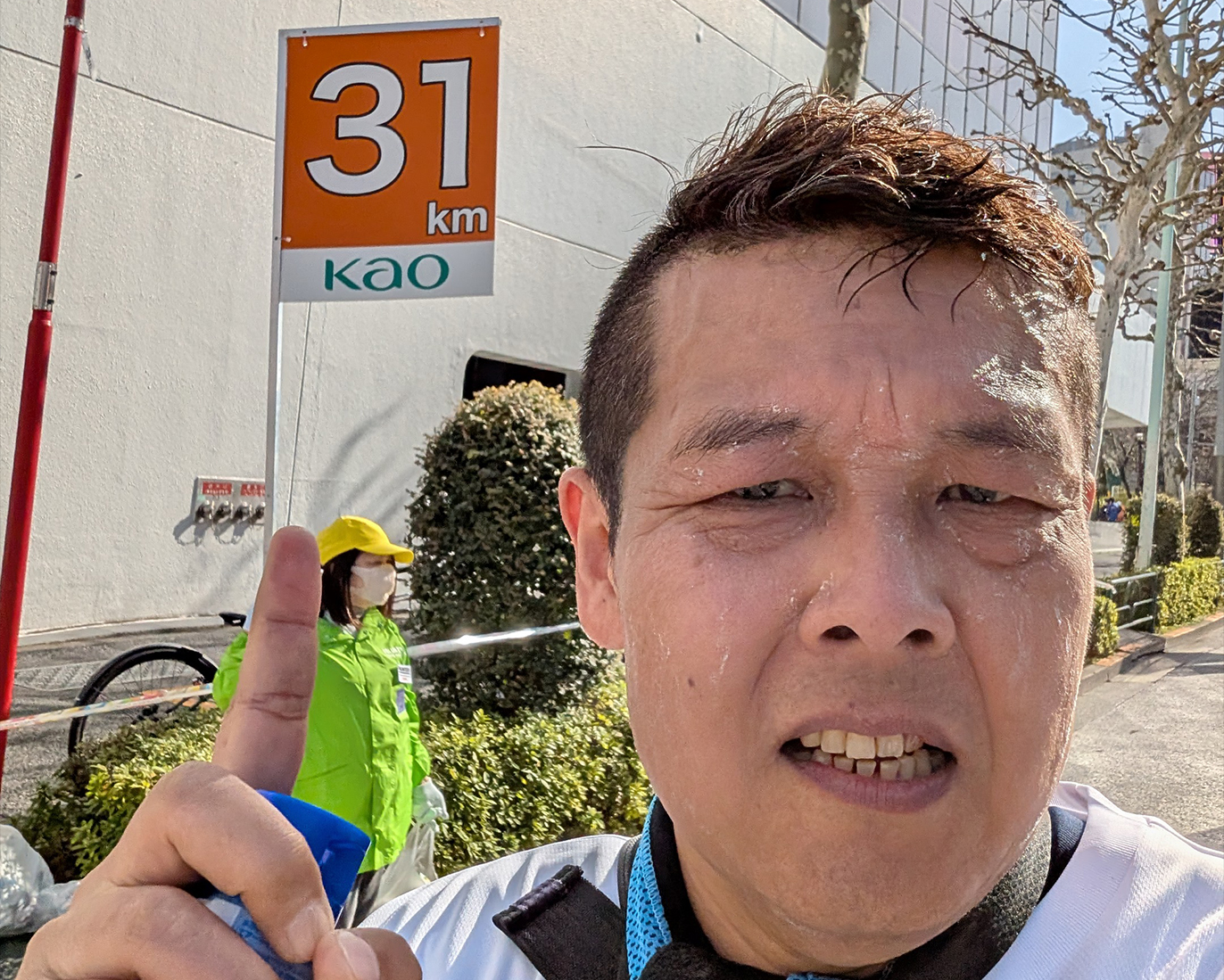 レース序盤の10kmまでは、トラブルもなく1kmあたり7分30秒のペースで順調に滑り出しました。東京の景色を楽しみながら走る、まさに最高のスタートです。